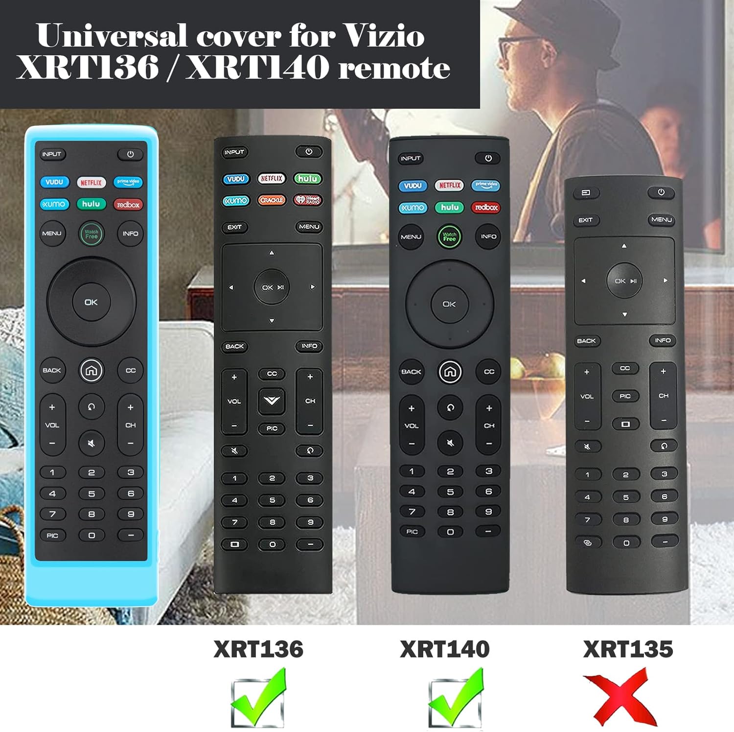 Soft and Lightweight Silicone Environmental Material can effectively protect your xrt136 Vizio smart TV remote from being scratched, bumps, vibrations, dusts and washable.Prevent the back cover of the remote control for Vizio TV from being lost.Prevent the child from opening the back cover and playing it indiscriminately. Keep your VIZIO XRT136 Remote controller looking brand new.