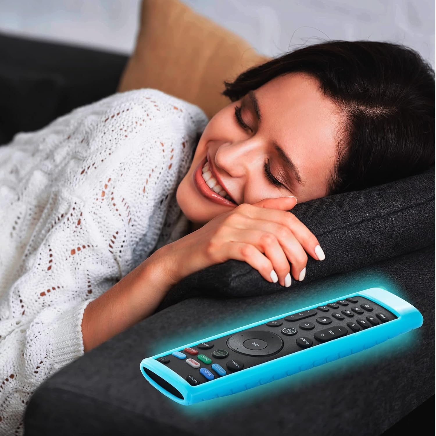 This remote cover which in GLOW Green and Glow Sky Blue has luminous colors glow in the dark, let you find it easily at night. Never worry losing your Vizio remote control for smart TV.Glow in the dark after injecting energy via table lamp or exposing it under lights for a long time before using this glow case will make it glow brighter in the darkness.