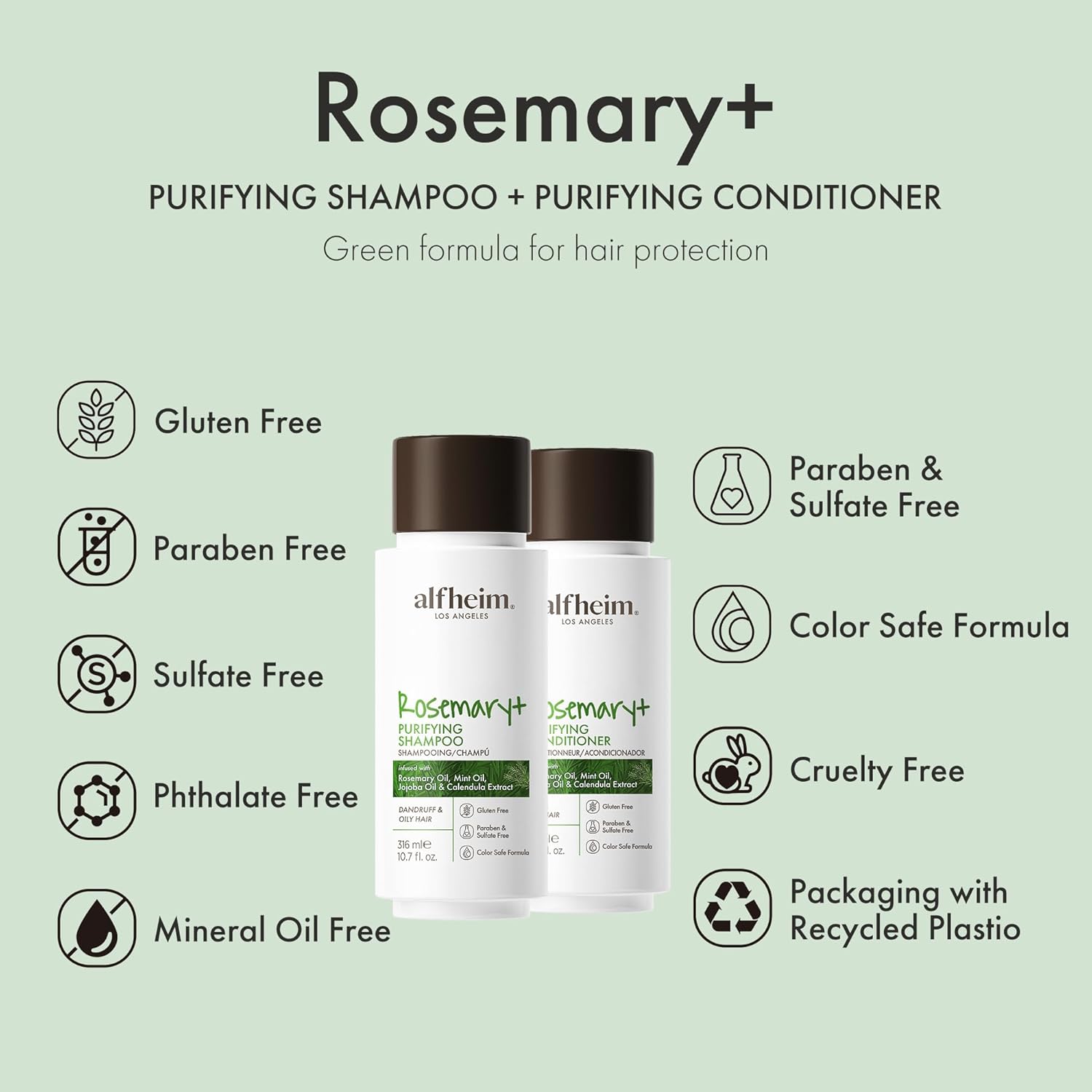 Rosemary+ Purifying Shampoo & Conditioner Set | Rosemary & Peppermint Oil for Scalp Refresh & Oil Control | Jojoba & Calendula for Hydration & Shine | Sulfate-Free, Color-Safe | 10.7 oz Each