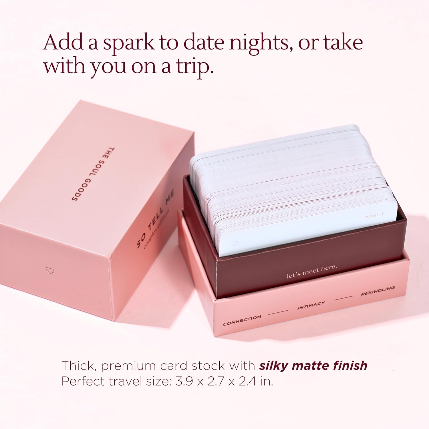 MADE TO LAST: Aesthetically pleasing and functional, So Tell Me decks are made with premium cardstock with a silky matte finish. Perfect keepsake or gift for couples looking to deepen connection while enjoying quality time together.