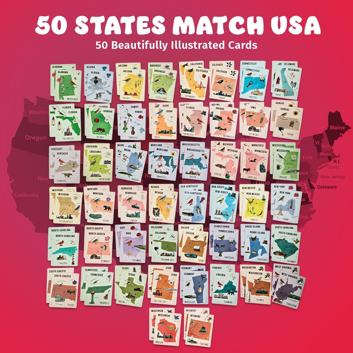Premium United States Matching Picture Cards: Use your attention to detail skills and find the matching State, Capital, Bird to make the perfect match. Comes with100 State Matching Picture Cards for endless family fun