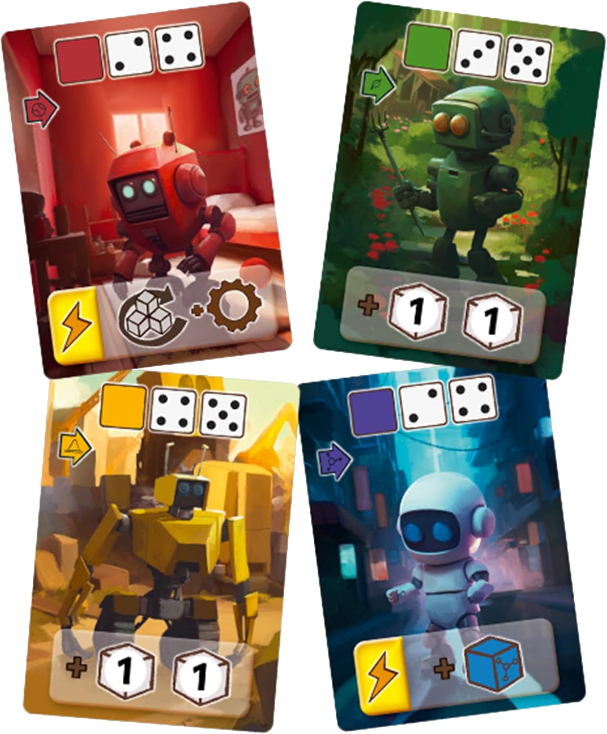 BUILD YOUR ROBOT FACTORY: Gather dice from the junkyard to construct robots, upgrade your factory, and bring your creations to life with spark energy.