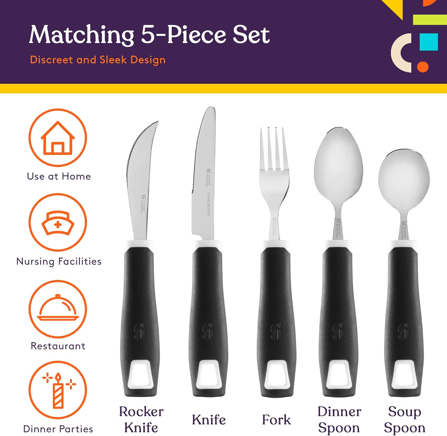 Adaptive Utensils (5-Piece Set) Wide, Textured, Non-Slip Handles Stainless Steel Construction Dishwasher Safe