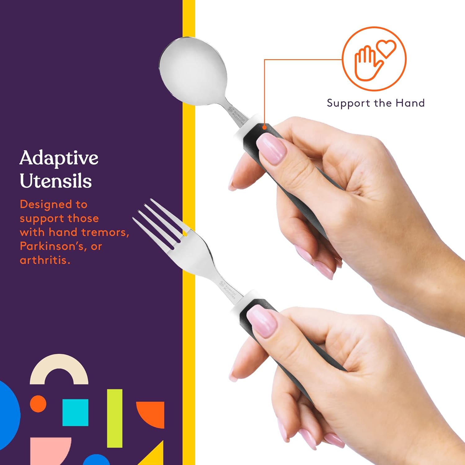 Wide, Non-Slip Grip – Each of our non-weighted adaptive utensils features a wider ribbed handle for better grip to improve dexterity and control.