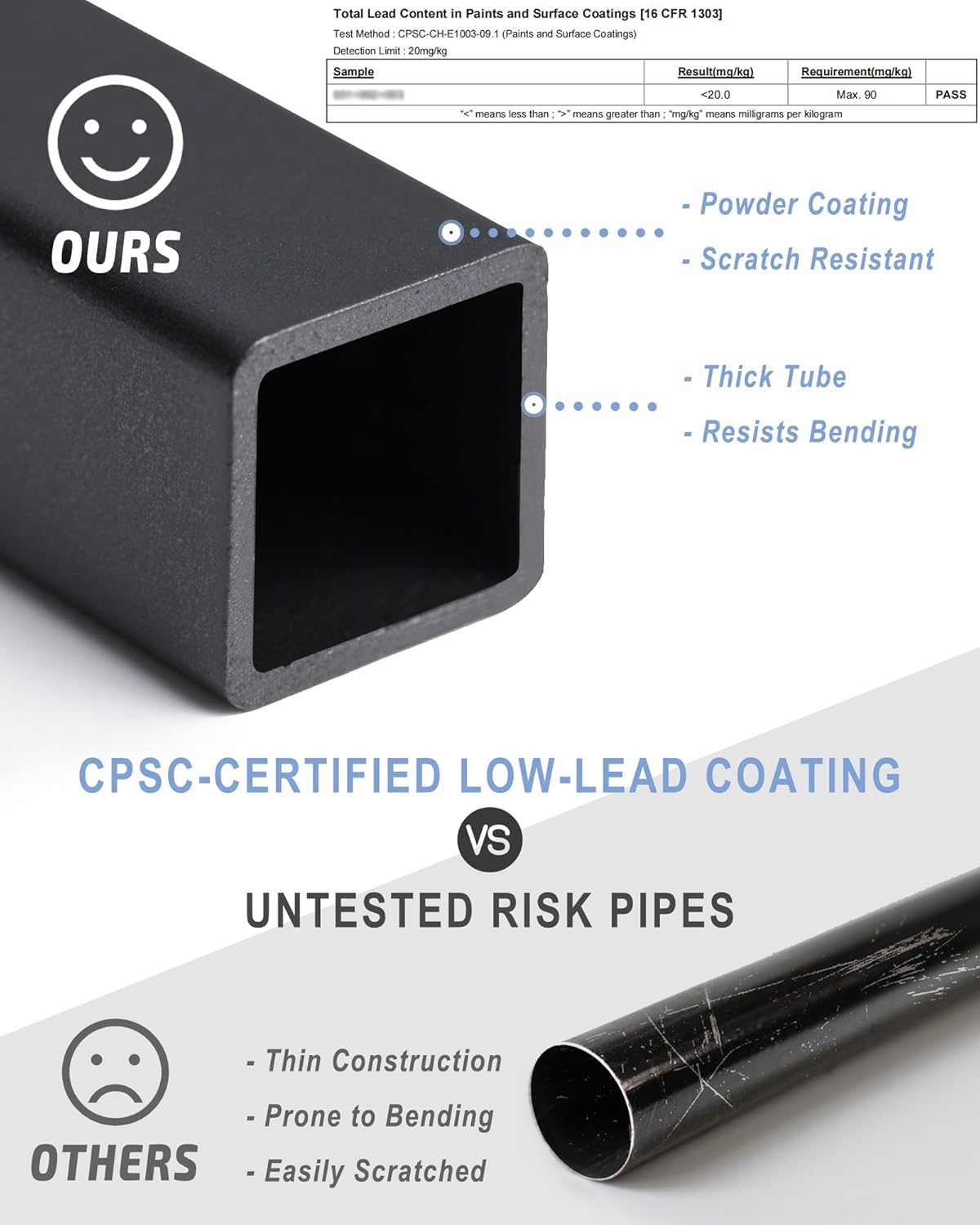 【Sturdy and Safe】Made of high quality metal with a maximum weight capacity of 350 lbs. The surface coating meets the CPSC-16-CFR-Part-1303 standard, durable and safe to use.