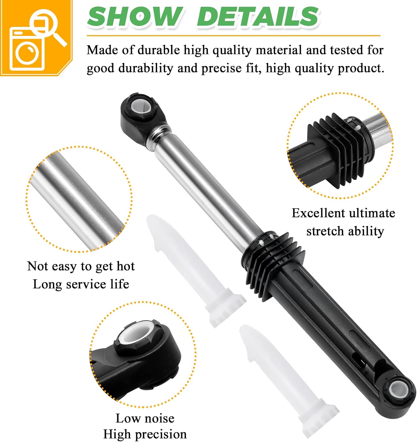 ✔✔【383EER3001G 4901ER2003A WASHER SHOCK ABSORBER】: 383EER3001G lg washer shocks reduce noise production during operation, help cushion and balance the drum, and prevent shaking even at high speeds. ►The 383EER3001J lg washing machine shock absorber is made of ABS plastic, wear resistant metal and high quality rubber material, resistant to wear and consumption, tested for its good sensitivity and precise fit, more robust, not easy to chip, rust or separate, long service life, Meets OEM standards