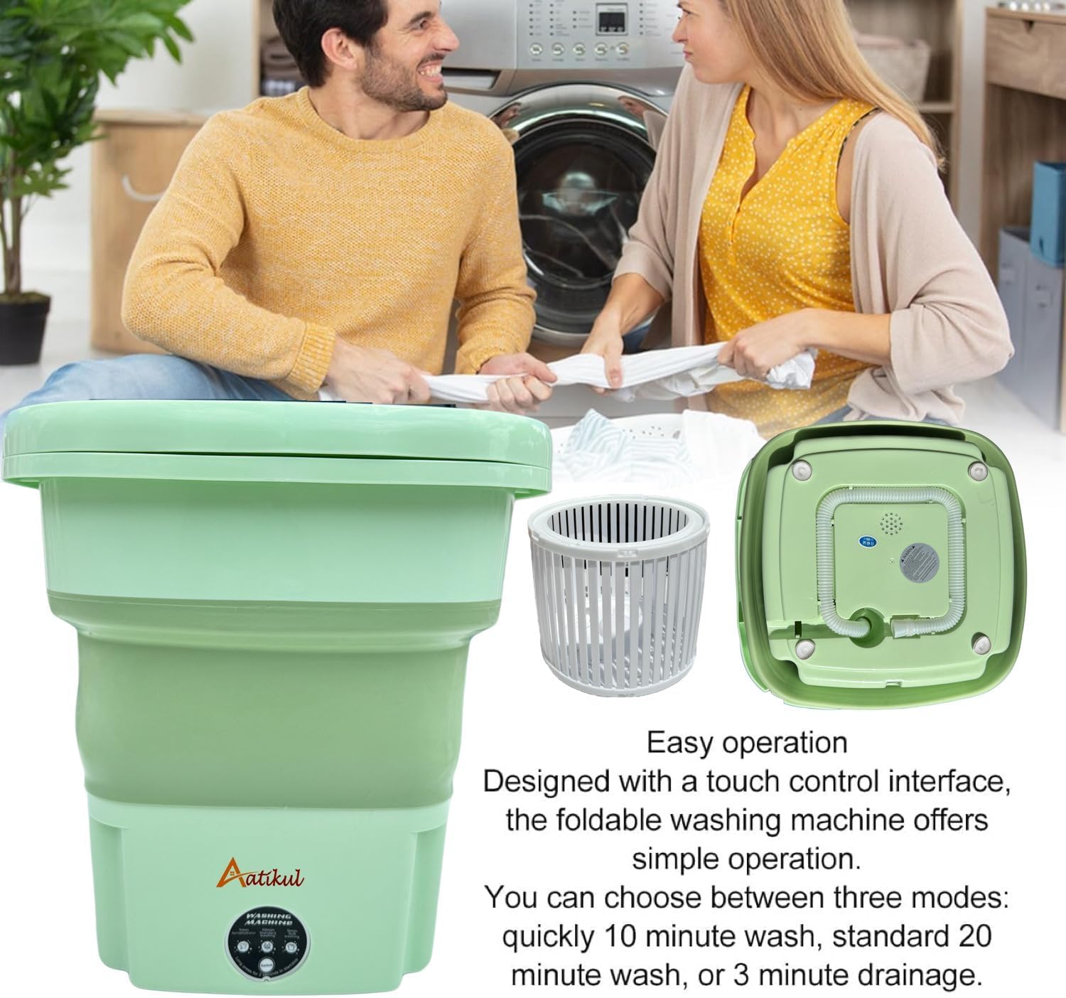 Foldable Design: This portable washing machine can be folded for easy storage, fitting neatly between shelves or under your bed without taking up much space.