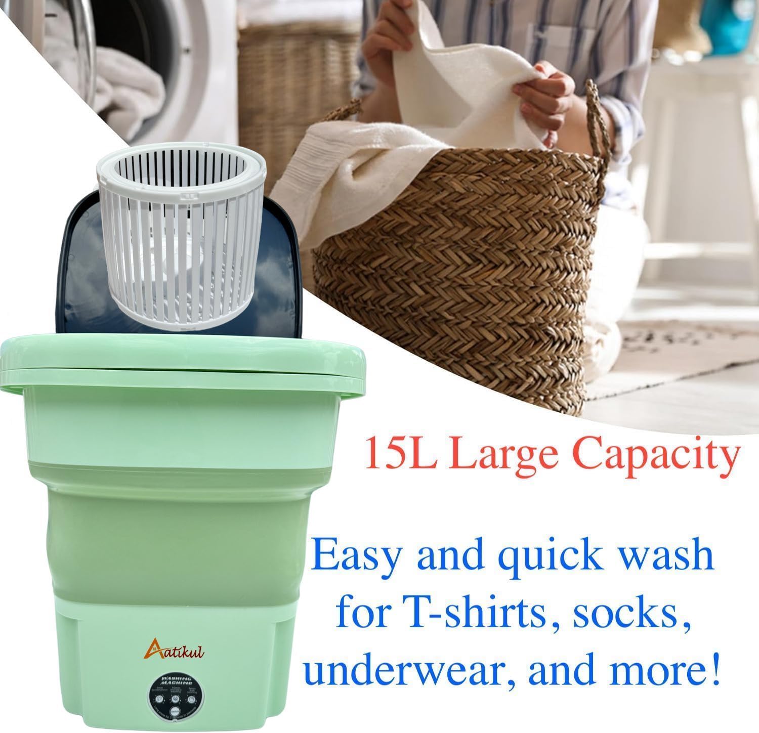 15L Large Capacity: With a 15-liter capacity, it’s ideal for washing T-shirts, socks, underwear, and more. Perfect for travelers, renters, and homes with kids or pets.
