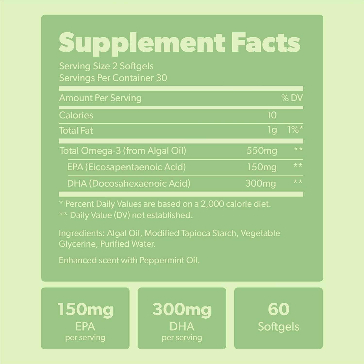 Bioavailable DHA & EPA: Our Algae Omega 3 contains a total of 500mg of Omega-3s, 300mg DHA, and 150mg EPA per serving. Other plant oils, such as flaxseed oil, don’t contain DHA or EPA. DHA And EPA are naturally occurring in algae oil.