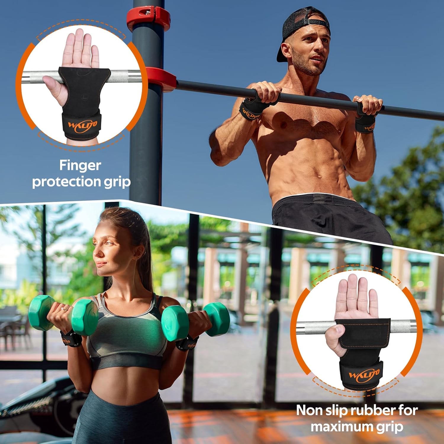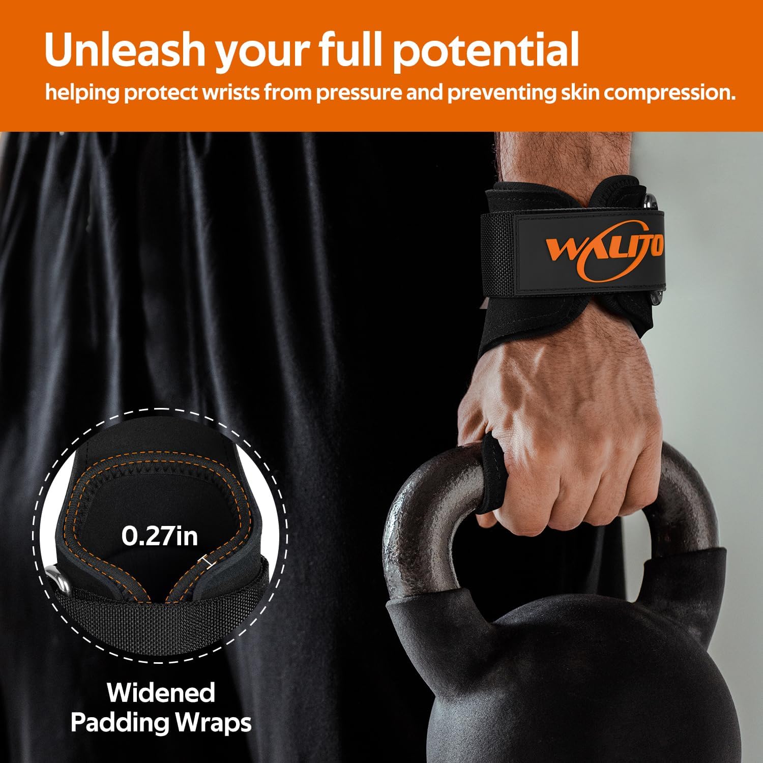 WALITO Weight Lifting Wrist Strap – Double Layer Leather Weightlifting Lifting Grips for Deadlift and Powerlifting, with Adjustable Neoprene Padded Wrist Wraps Hooks for Men/Women