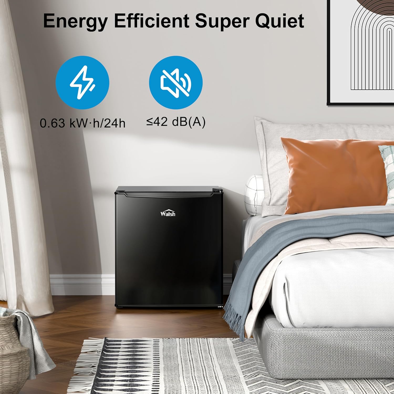 Walsh Compact Refrigerator, Single Door Mini Fridge, Energy Efficient, Adjustable Mechanical Thermostat with Chiller, Reversible Doors and Leveling Front Legs, 1.7 Cu Ft., Black
