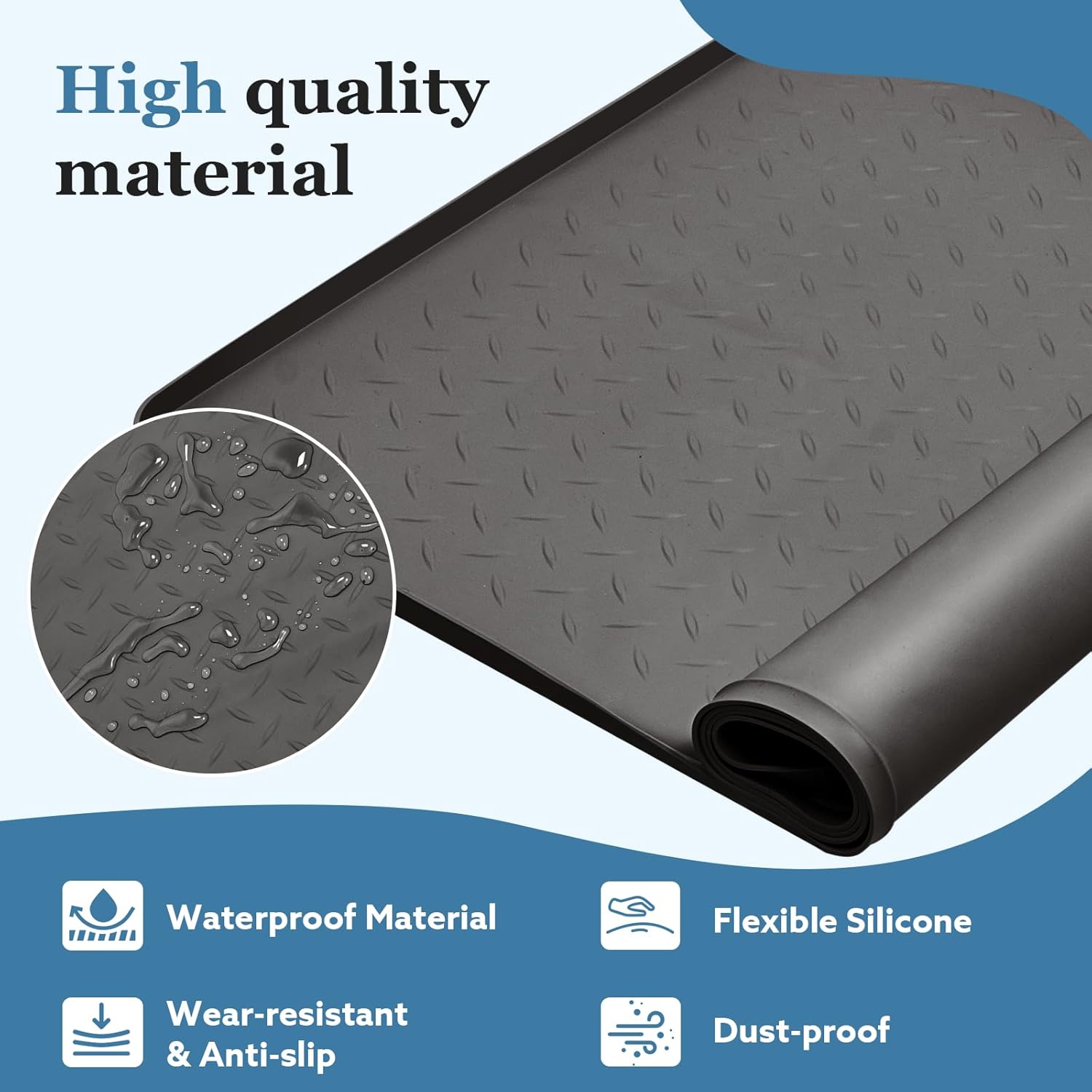 【Durable & Waterproof】Crafted from industrial-grade silicone, this heavy-duty mat features reinforced raised edges to contain spills and resist water penetration. The scratch-resistant surface protects your appliance’s finish while preventing damage from detergent spills and moisture. Whether used as a Washing Machine Cover or a Washer and Dryer Covers for the Top, it offers long-lasting durability and protection.
