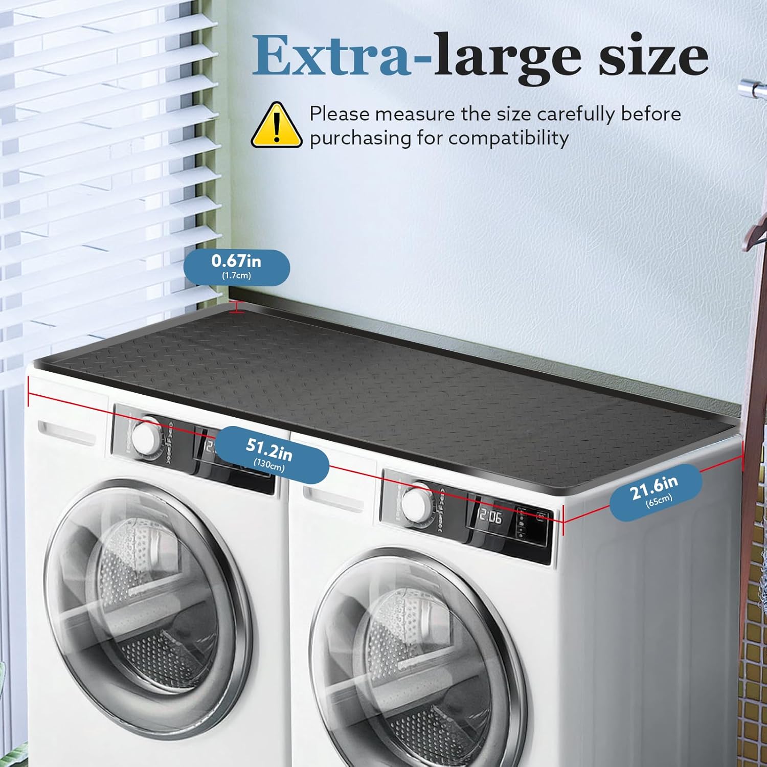 【Extra-Large Perfect Fit】Measuring approximately 51.2″ x 25.6″ with a 0.67″ raised edge, our premium Washer Dryer Countertop mat delivers complete coverage for most standard dryer and washing machine tops. Always verify your appliance dimensions before purchase to ensure compatibility. This Washer and Dryer Covers for the Top ensures your laundry surface stays protected from daily wear and tear.