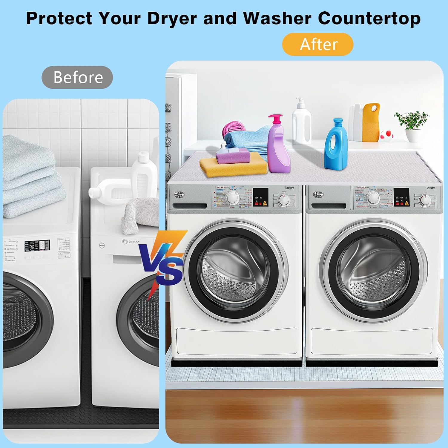 Silicone Mat for Washer Dryer Top: washer dryer top protector Crafted from top-notch silicone is soft, anti-slip, waterproof and dustproof. It prevents dust,dents,daily wear and scratches from bringing items down