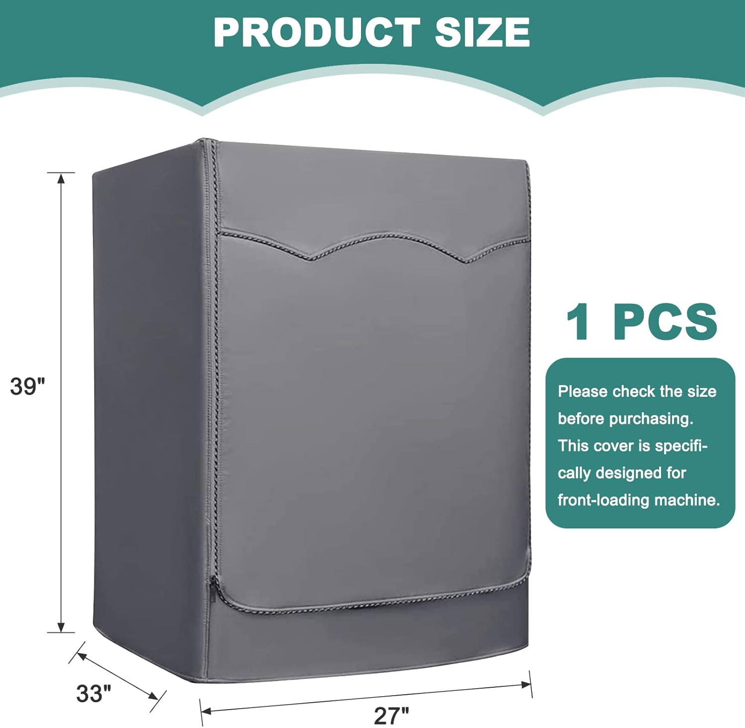 Size: 27″Lx33″Wx39″H. Designed to fit most flat-top front-loading washing machines, the cover is compatible with various brands and models.