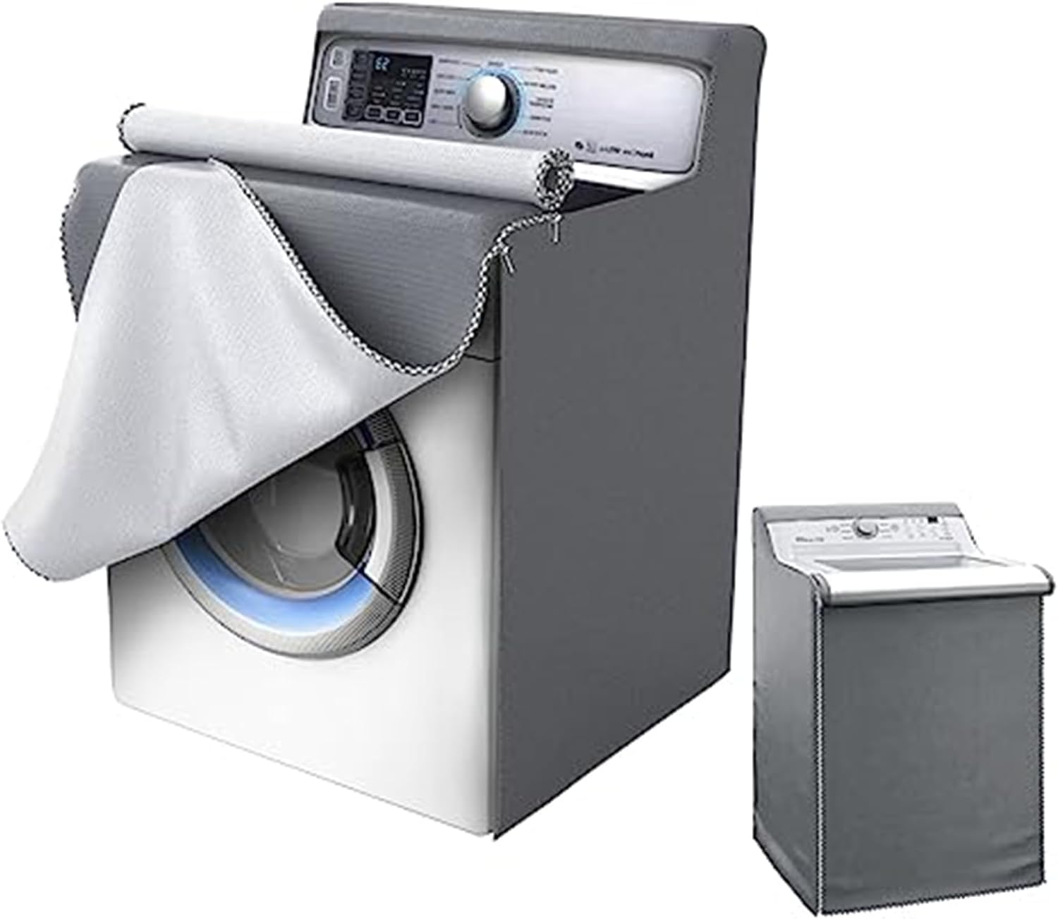 Washing Machine Cover Washer Cover Dryer Cover Waterproof Sunscreen Dustproof Durable Thicker Fabric 2 Zippers Design for Convenient use(W27*D26*H43in grey)