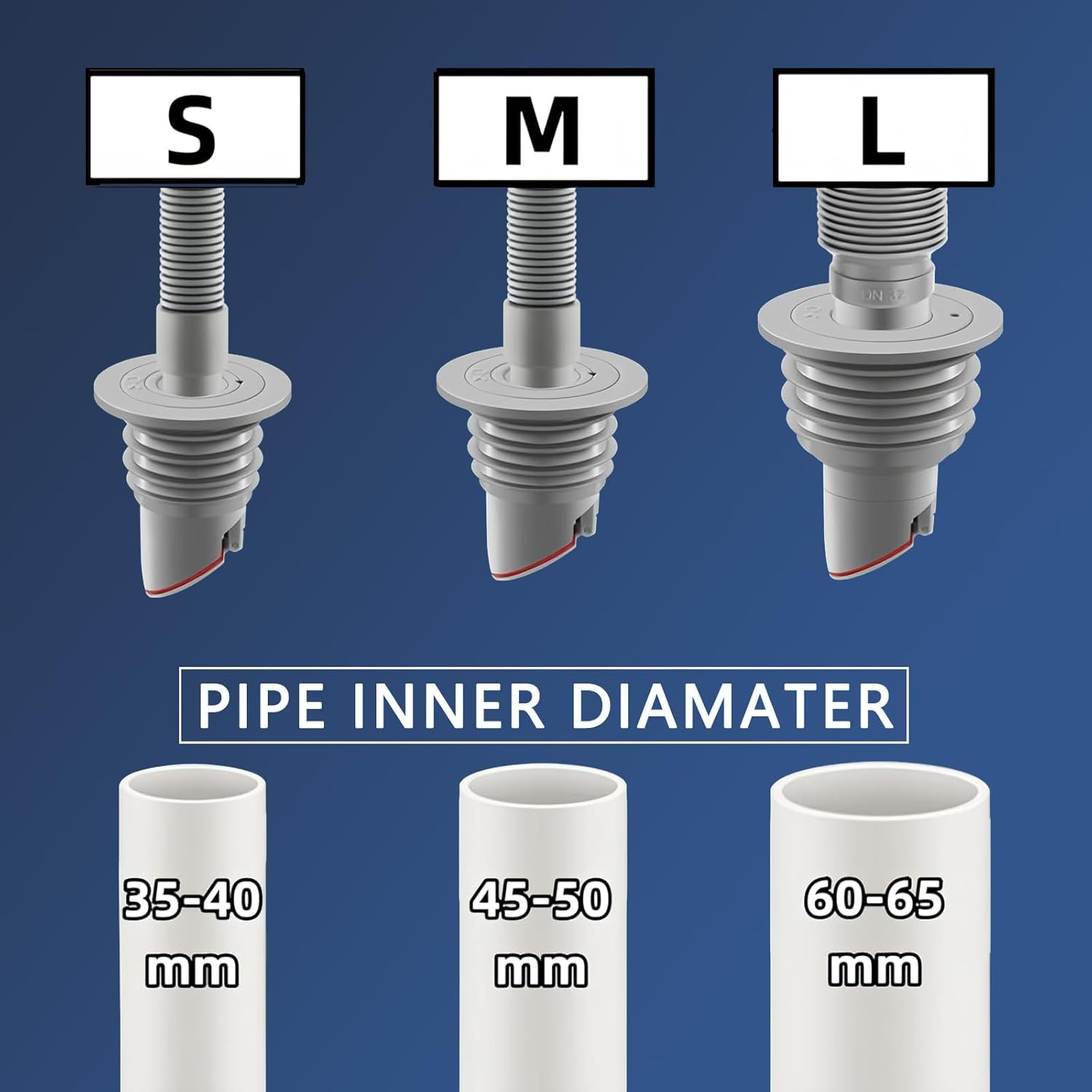 【APPLICABLE SIZE】: The bathroom plumbing plug is designed with variable diameter, which can be easily connected to 45-50 mm sewer pipes. Quick installation in seconds without special tools or skills.