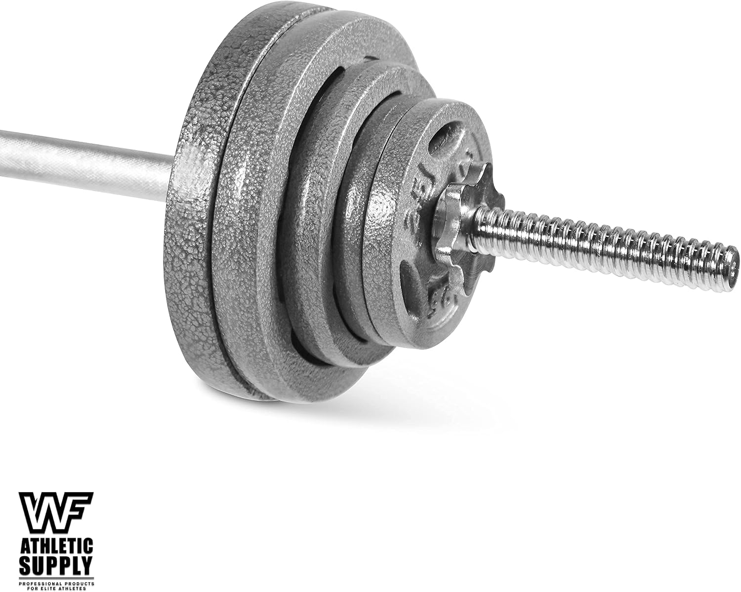 💪 Choices – WF Athletic Supply cast iron 1-Inch standard grip plates are available in 2.5, 5, 10, and 25 lb weights; Each weight has easy handle grips to make moving, loading and storage smooth. Increase muscle strength with regular use, be flexible combination.
